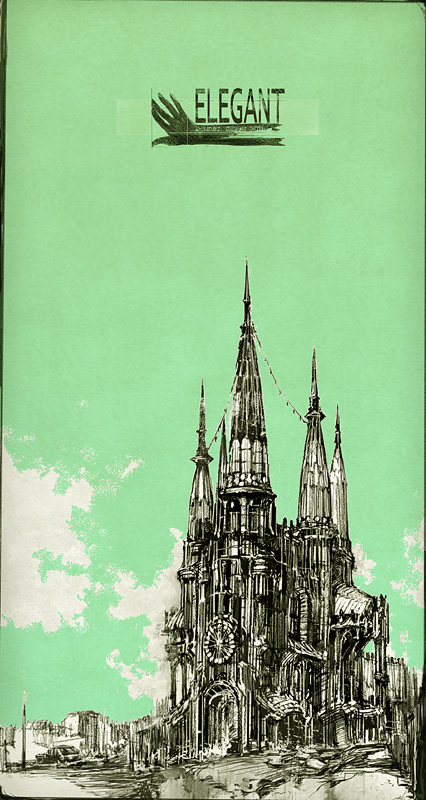 なんちゅうか、雰囲気出しあそびとして再校正。ブランドイメージっうことで。図柄は田舎の協会だかなんだかっぽく。たいそうな造りのわりには小さい。四辺のずれやらすすけた感じも全てフェイクデザイン(全部フォトショ、ロゴを押えるテープも描いてみた。見づらいけど)。