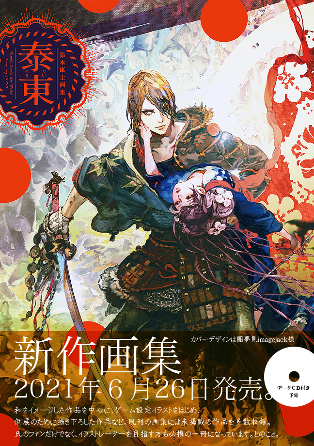 タイトル:「鈴木康士画集 泰東」 発売日:2021年6月26日 出版社:新紀元社 サイズ:B5判 ページ数:136p オールカラー 予価:本体2,000円+税 書籍コード:ISBN978-4-7753-1933-8 今回は気持ち和もの時代もの推しです。 既刊の鈴木画集には未掲載の作品で構成してます。なので「朔望」「視線」「薄明」もよしなに。。。 This book has a lot of samurai motifs and Japanese art. It consists of works that have not been published in art books published so far. Yasushi Suzuki Art Books "1997-2007+" "Eyes" "Twilight" are also recommended. 〈※テキトウ英訳。間違いあれば御免〉 |